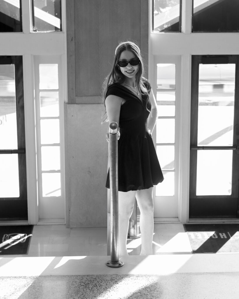 I’m so thrilled when I get to explore new creative outlets while photographing beautiful buildings with so much history. The Crazy Water Hotel provided the perfect vintage backdrop for this senior session. This viral pantyhose trend was something I’d always wanted to incorporate into a shoot, and I’m so glad I did. The result? Modern images with a classic film photography feel.